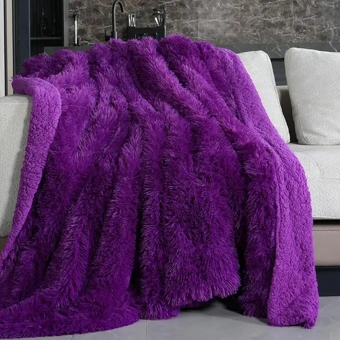 High Quality Material: This high quality comfy faux fur throw blanket does not shed, keeps couch and bed spotless. Reversible sherpa shaggy faux fur blanket crafts with the greatest quality of 100% microfiber fabric all layers for durable use - Skin-friendly for folks who are sensitive to natural fibers - Compared to the real thing, faux fur looks better after years of usage.