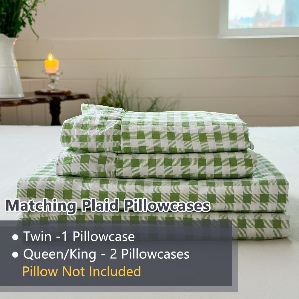Charming Ruffle Design: This ruffle sheet set adds an elegant farmhouse touch to your bedroom. The delicate ruffled edges and classic gingham pattern blend vintage charm with modern comfort, perfect for creating a cozy aesthetic.