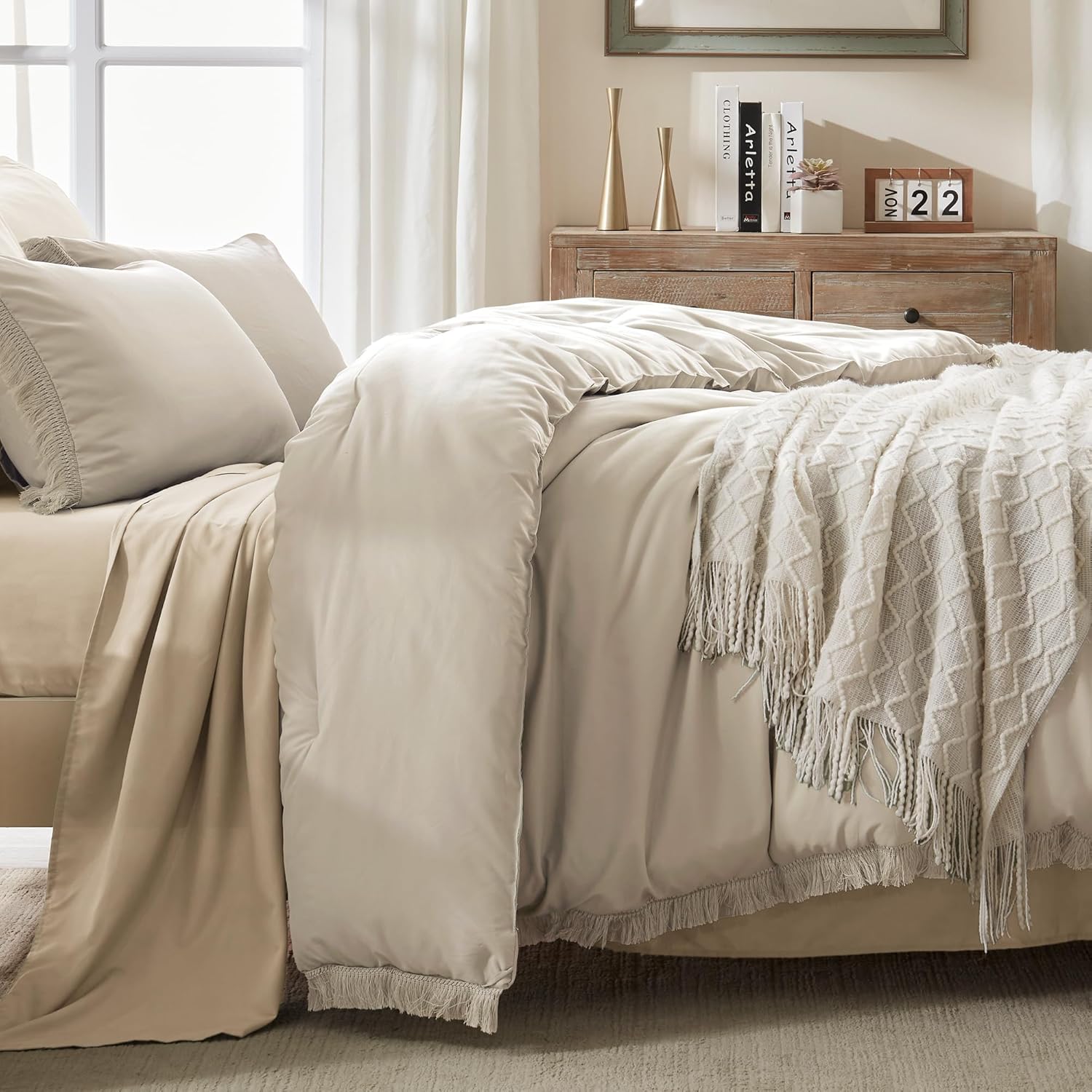 Ultra Soft Fabric: The tassel comforter set is made of premium polyester, which is super soft, breathable, warm, and comfortable. This lightweight comforter set achieves a perfect balance to be warm in winter and cool in summer and used for all-season.