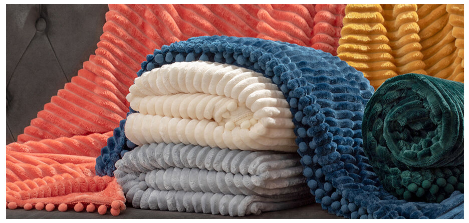 【Pompom & Strip Design】- Flannel fabric with pompoms fringe around the blanket, different color and white stripe pattern with 3D touching offers you amazing senses of softness. The fabulous color revives this blanket with an elegant appearance to complement your room a chic feeling.