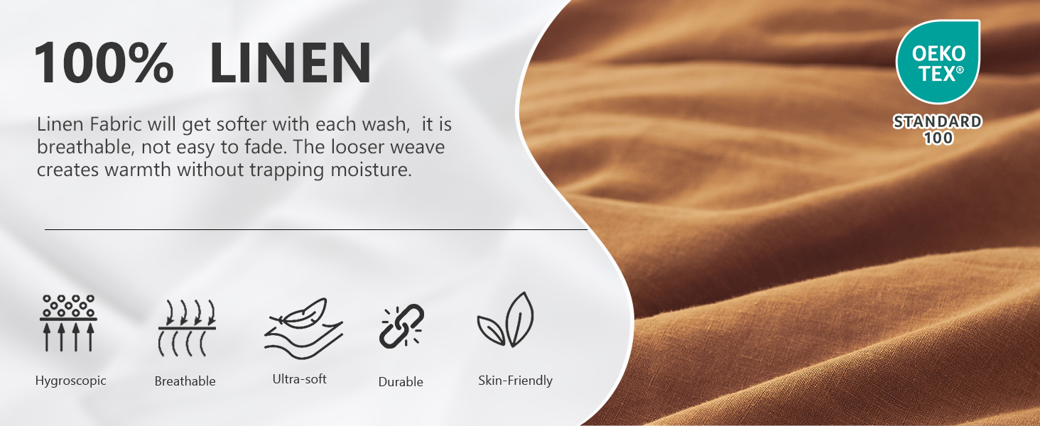 Natural French Linen Fabric: Linen comforter cover has excellent breathability, effectively regulates body temperature and humidity, is OEKO-TEX Standard 100 certified, allowing you and your family to enjoy a comfortable sleeping experience all year round.