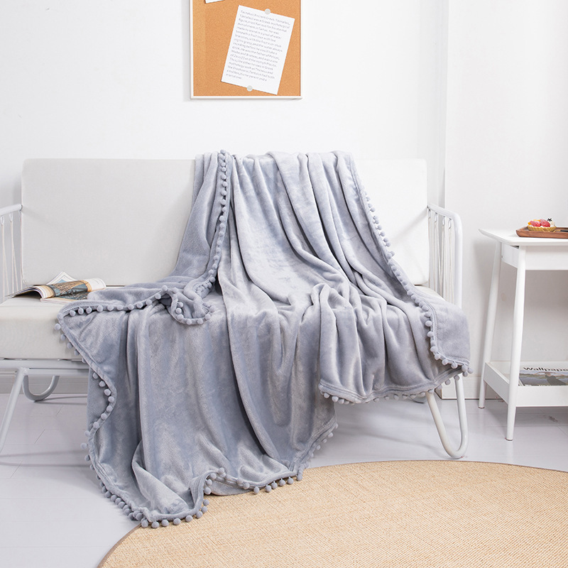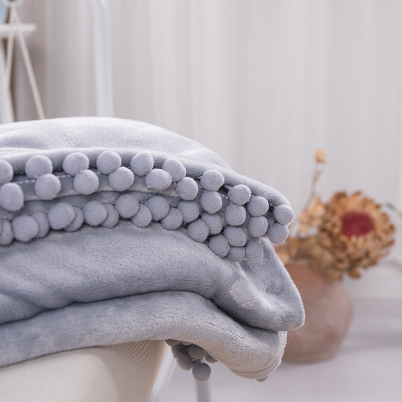 Ball ball solid color flannel thickened blanket fringe decorative blanket wholesale