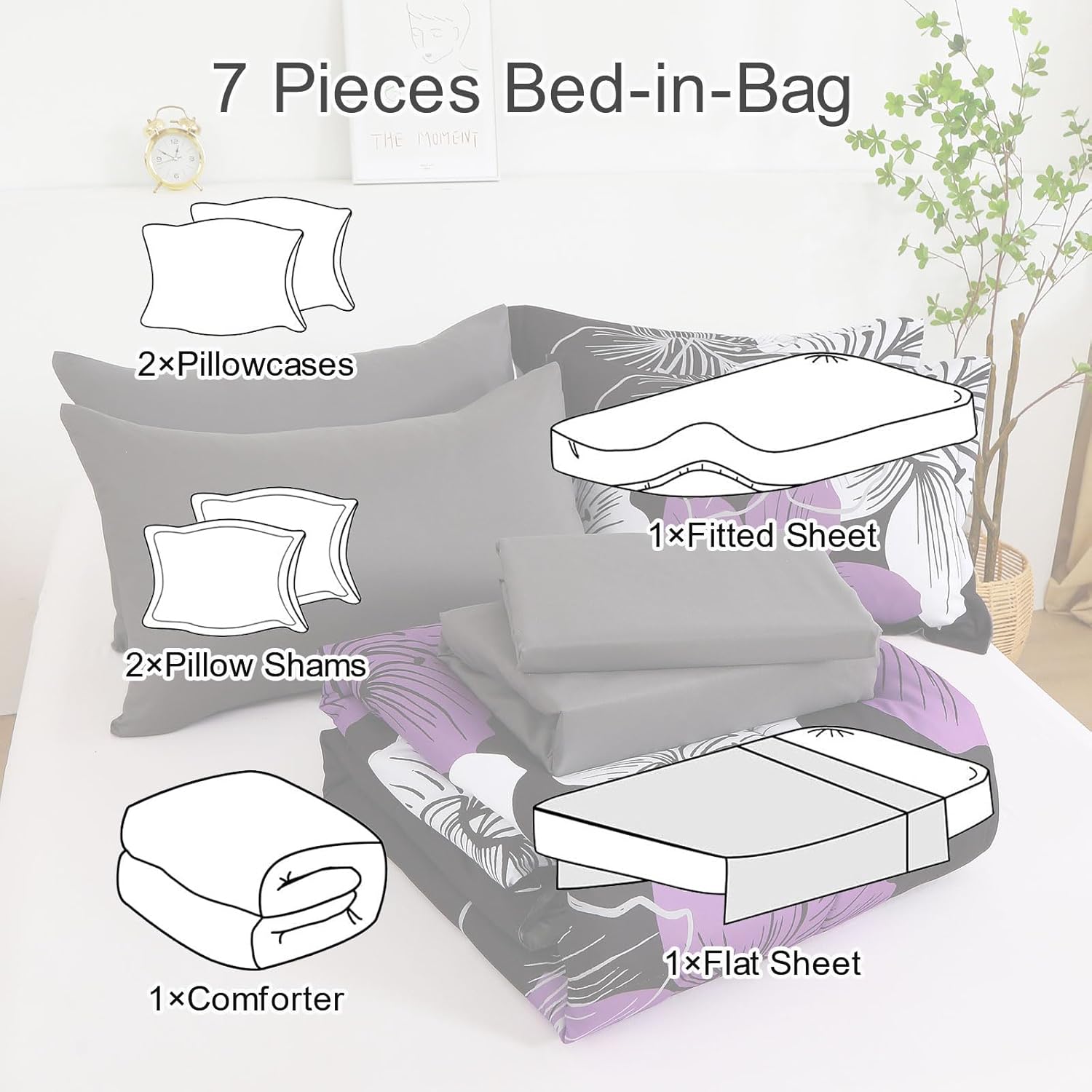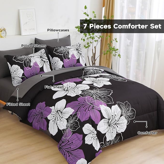 Luxury Decor Floral Comforter Set 5pcs 6pcs 7pcs Printed Floral Comforter and Sheet Set Soft Microfiber Bedding Sets