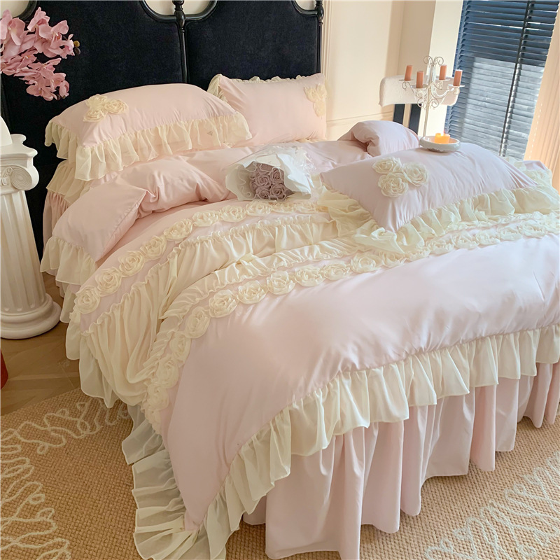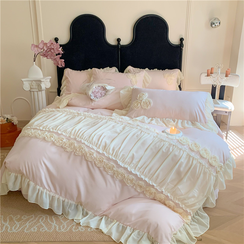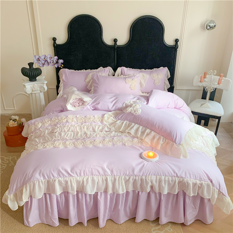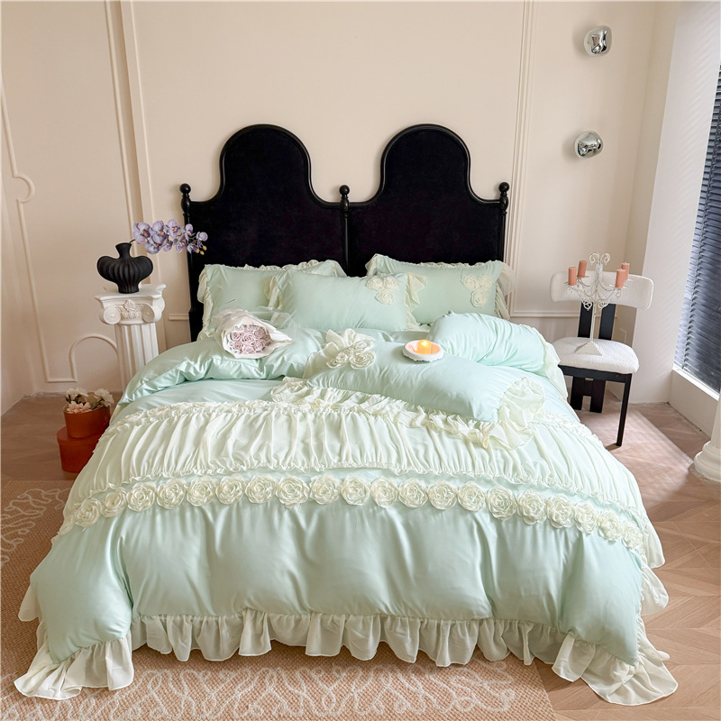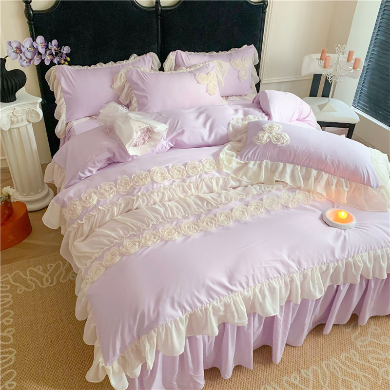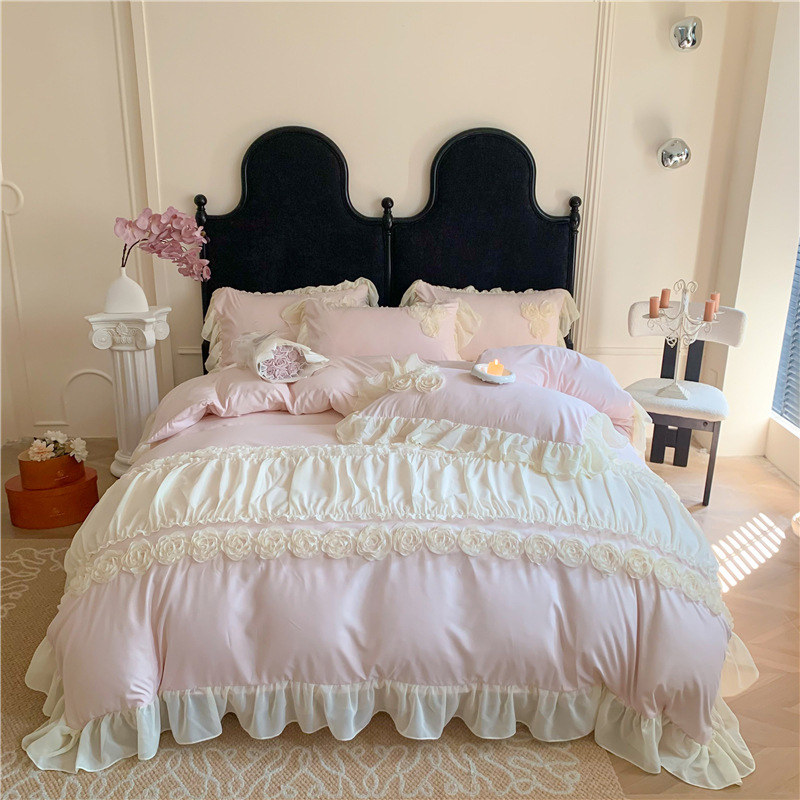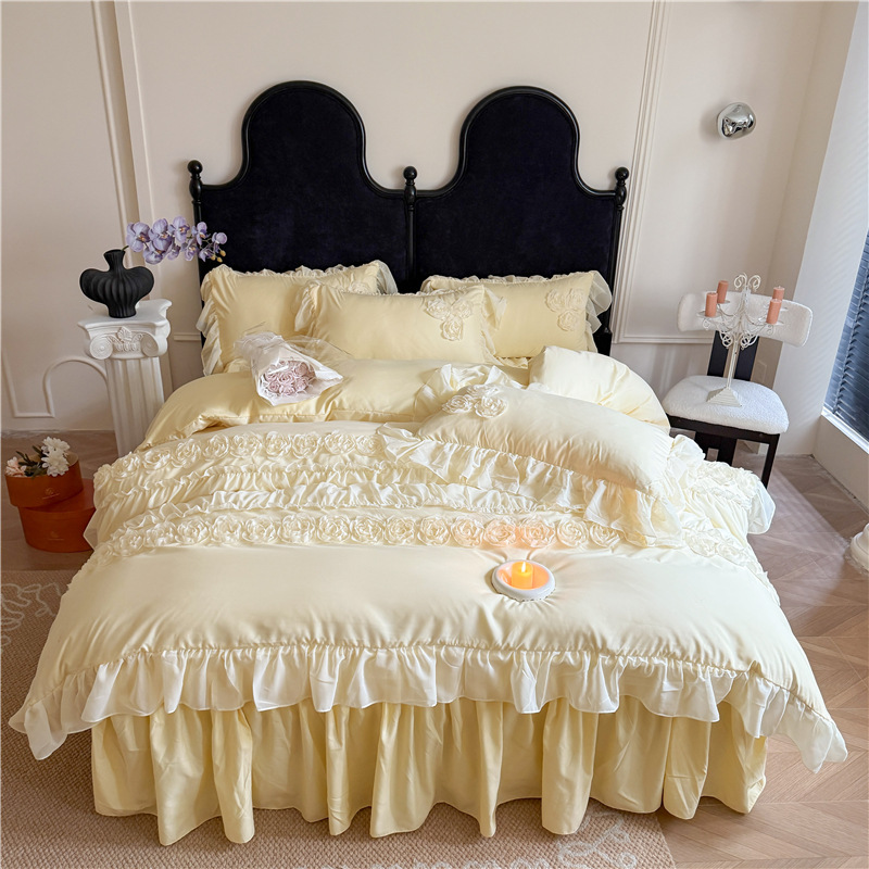 Product Name:Ruffle Beddding Set Usage:Home Decoration Wedding Decoration Packing:PVC Bag + Insert Card + Cardboard Feature:Reversible, Long Lasting, Fade Resistant, Breathable Design:Accept Customized Designs