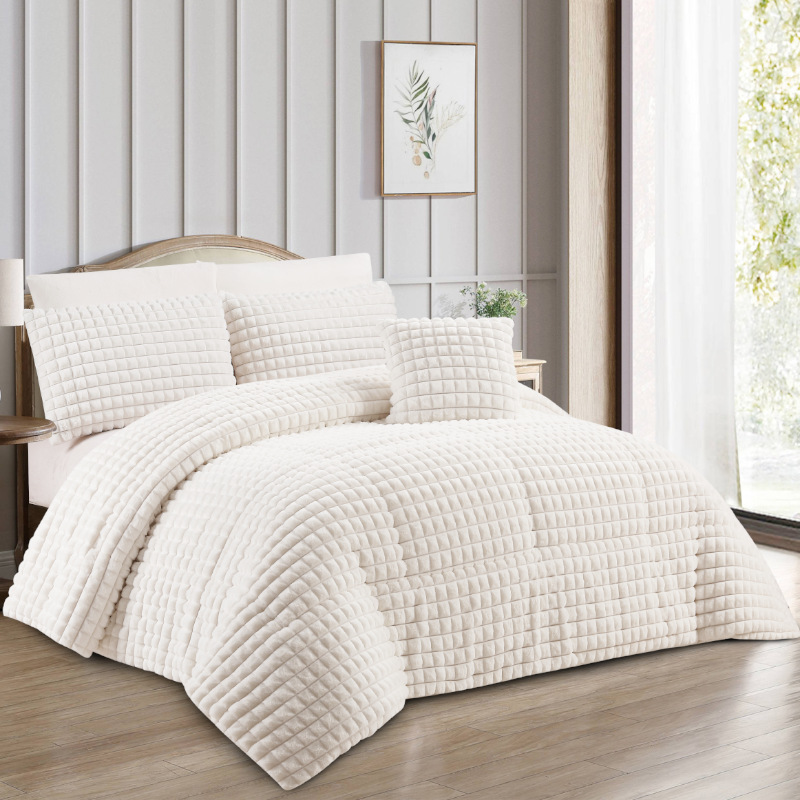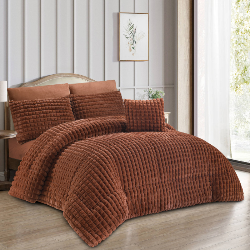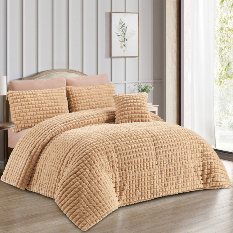 Comforter Set Soft Comforter for Queen Size Luxury Warm Bedding for Winter Fuzzy Double Rabbit Plush Thick Bed Set