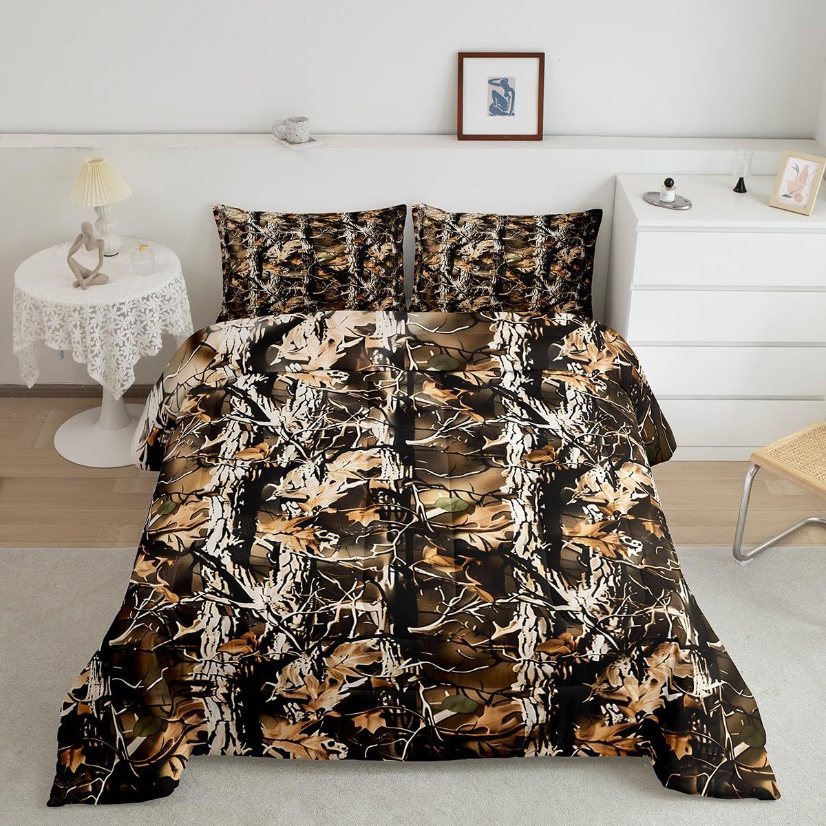 7 Pieces Queen Size,1 Comforter 90"x 90", 1 Fitted Sheet 60"x80"x16", 1 Flat Sheet 102"x90", 2 Pillow Cases 30" x 20",2 Throw Pillow Covers,Covers Only. 18"x 18".